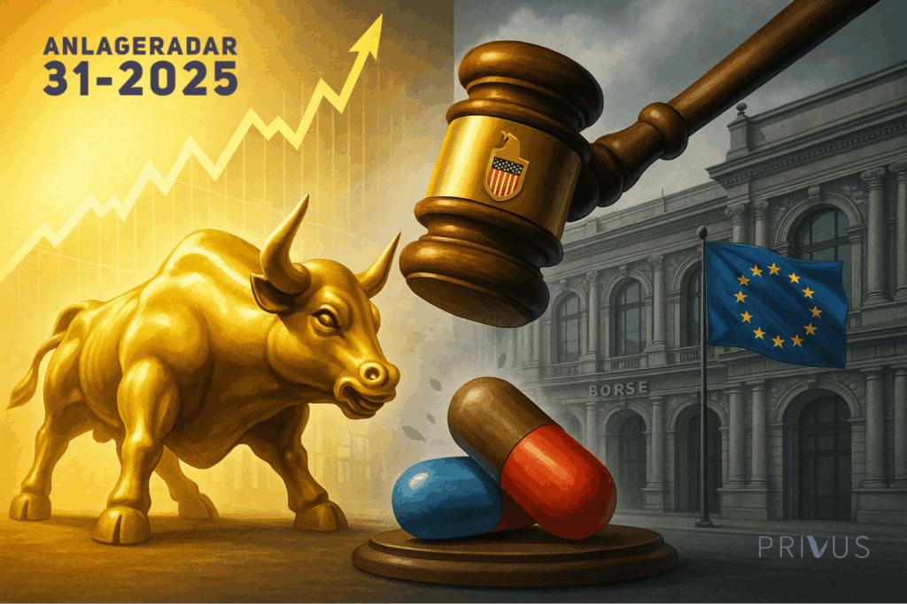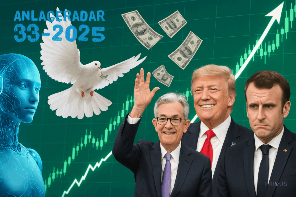 Der PRIVUS AnlageRadar zeigt Ihnen seit 2013 Aktuelles zum globalen Geschehen an den Finanzmärkten. Hierfür nutzen wir unser Informations-Netzwerk, vor allem aber präsentieren wir unsere eigene Meinung transparent und klar. Ehrlich, direkt und deutlich – auch in herausfordernden Situationen. Und das jeden Montagmorgen.